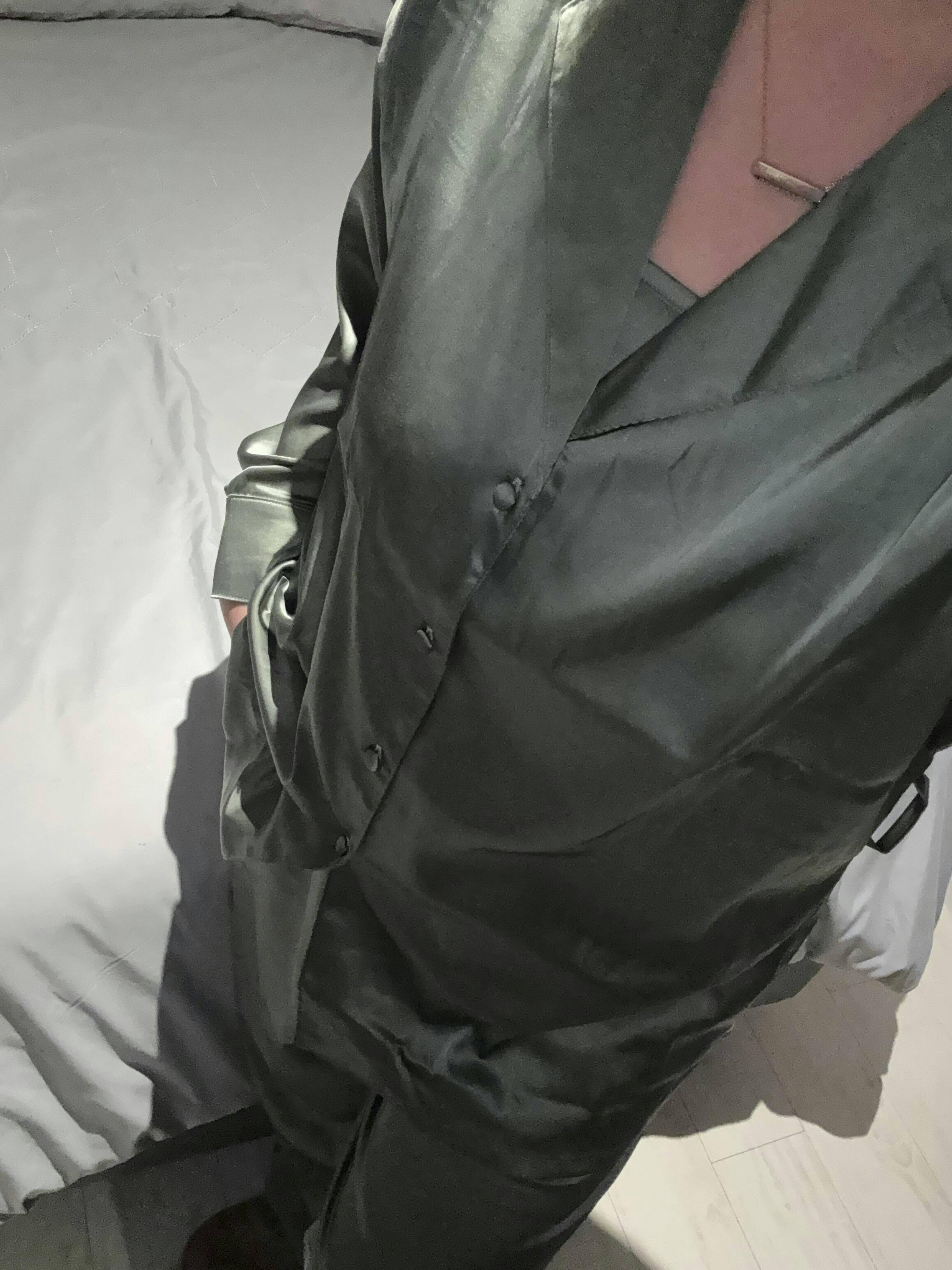 The Olivienne Green Satin Set is crafted from premium satin with a touch of stretch for comfort. Designed with high-waisted, full-length, wide-leg trousers with pockets, satin-covered button-down top and cuffs. This set is finished with our signature robe-style belt, your comfort, your way. Giving you the freedom to wear it relaxed or cinched at the waist.